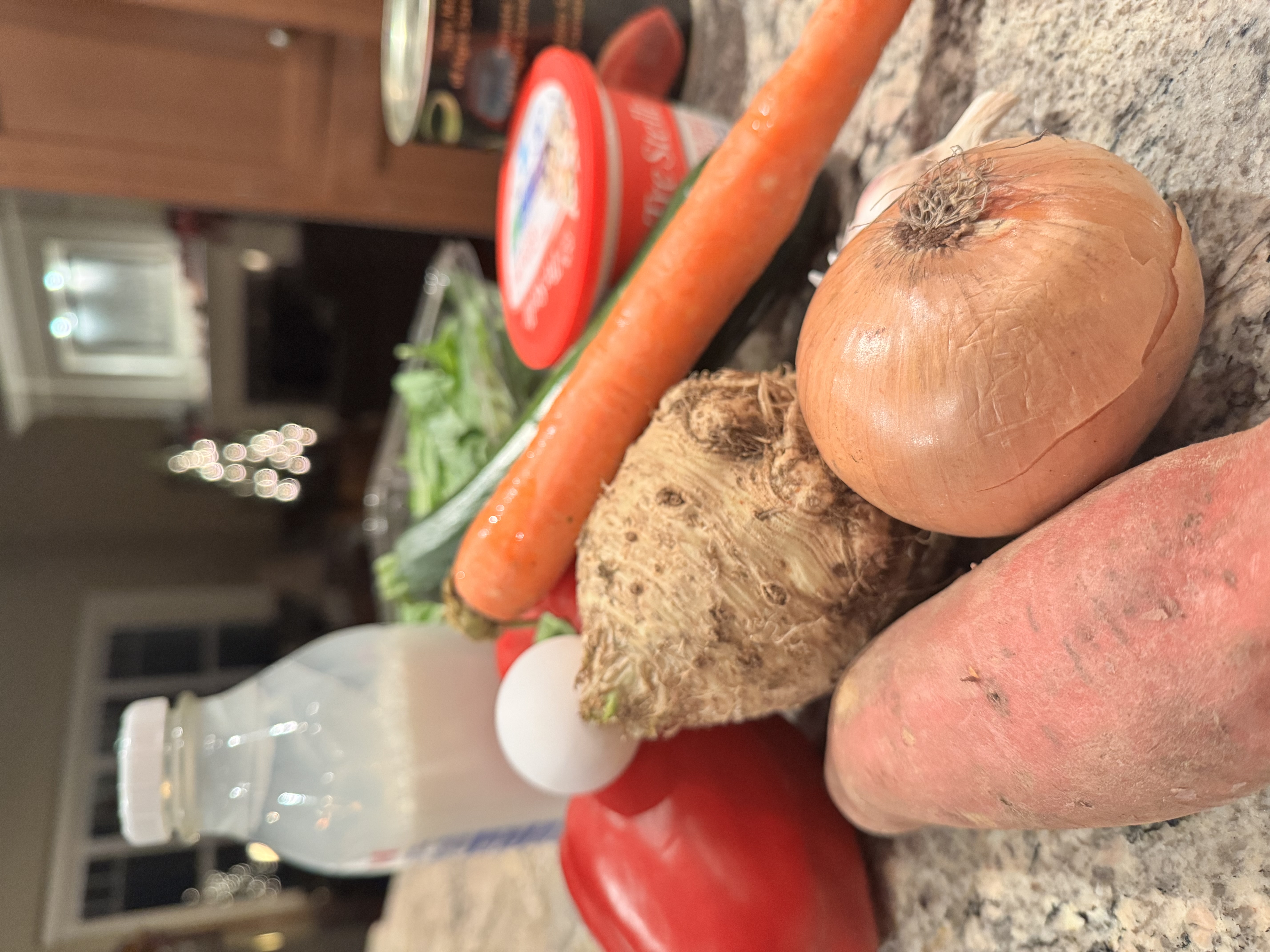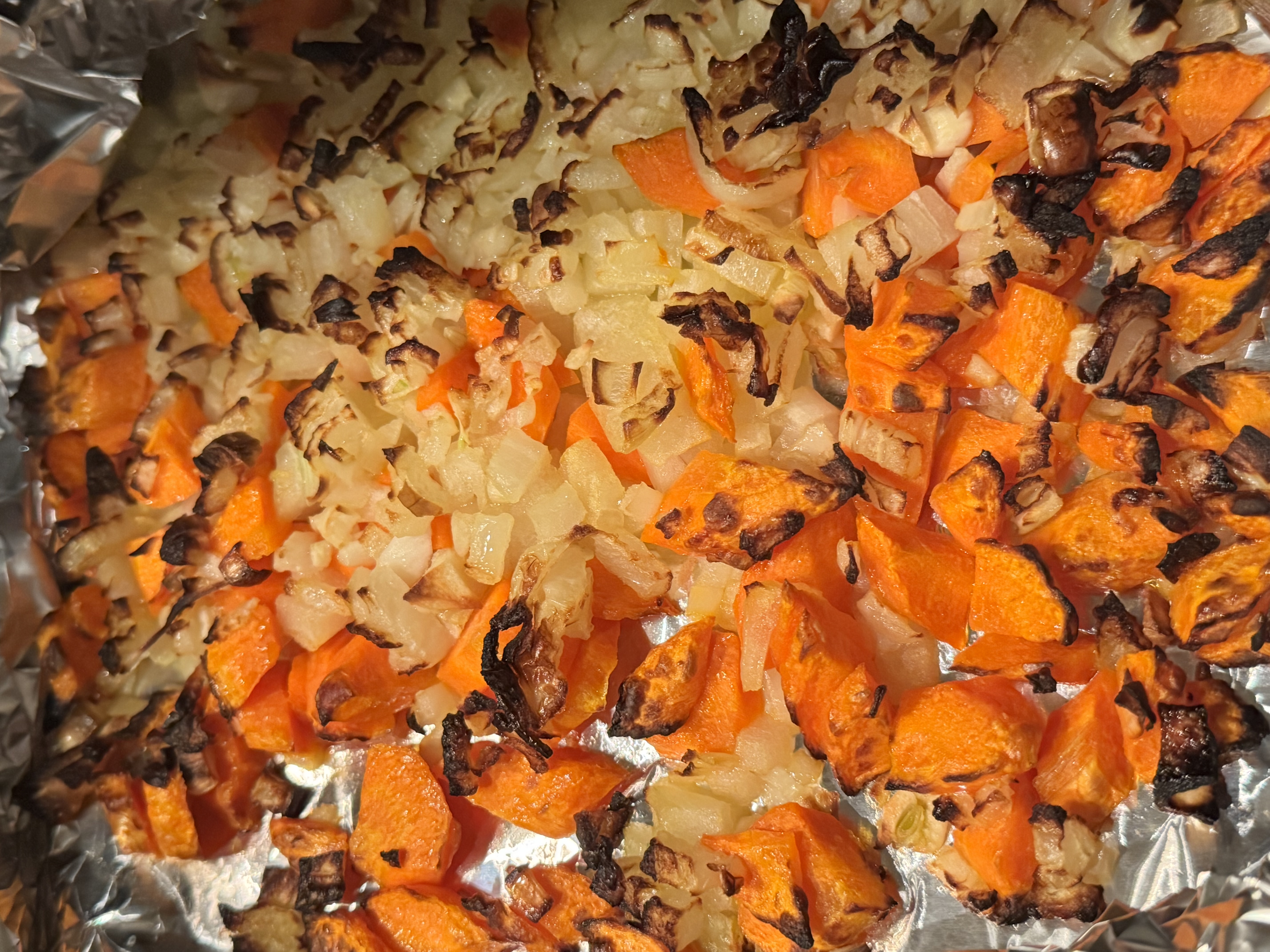 1 medium sweet potato, sliced 2–3 mm, lightly roasted