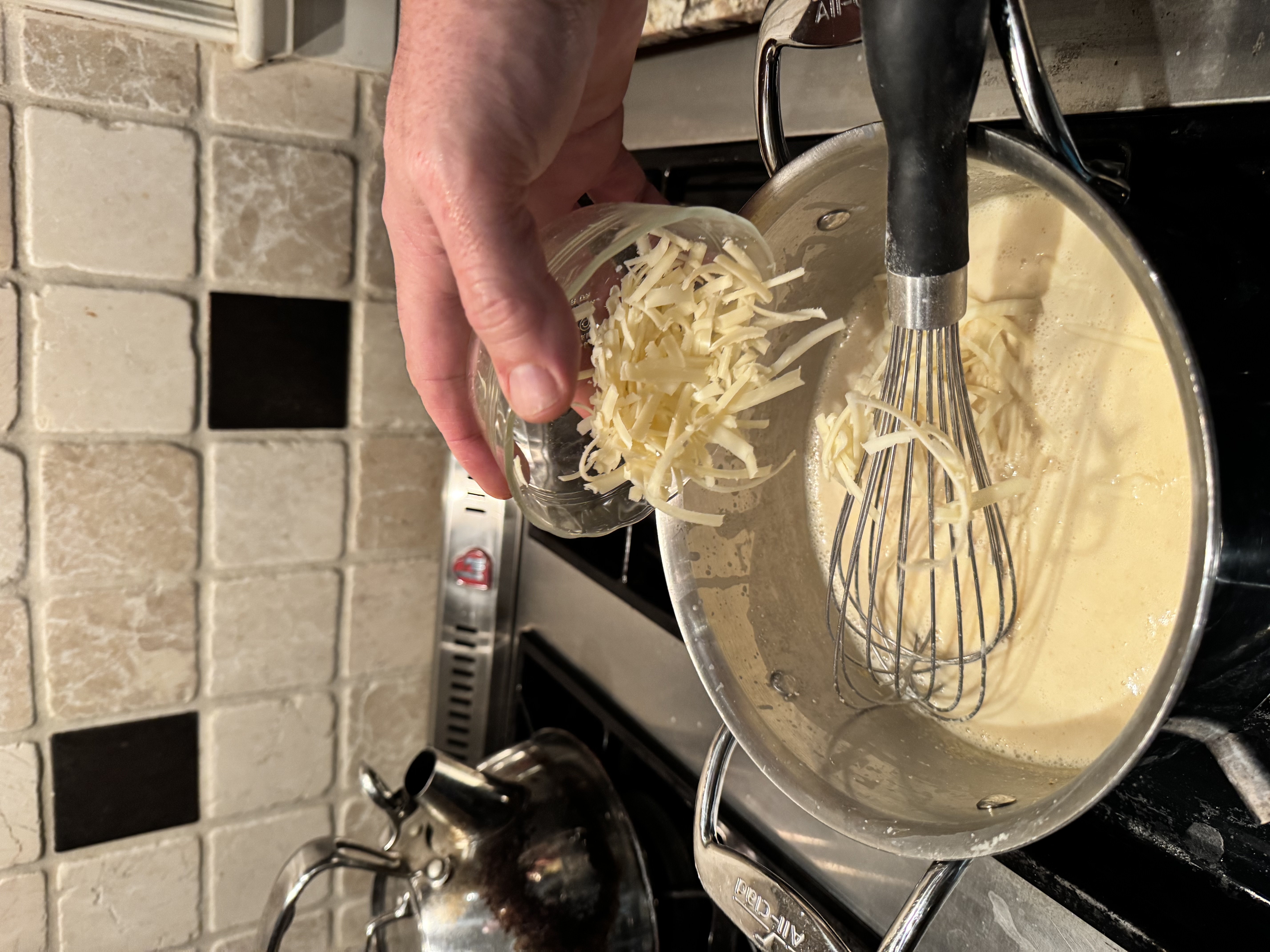 Add nutritional yeast & smoked cheddar; whisk until fully melted and smooth.